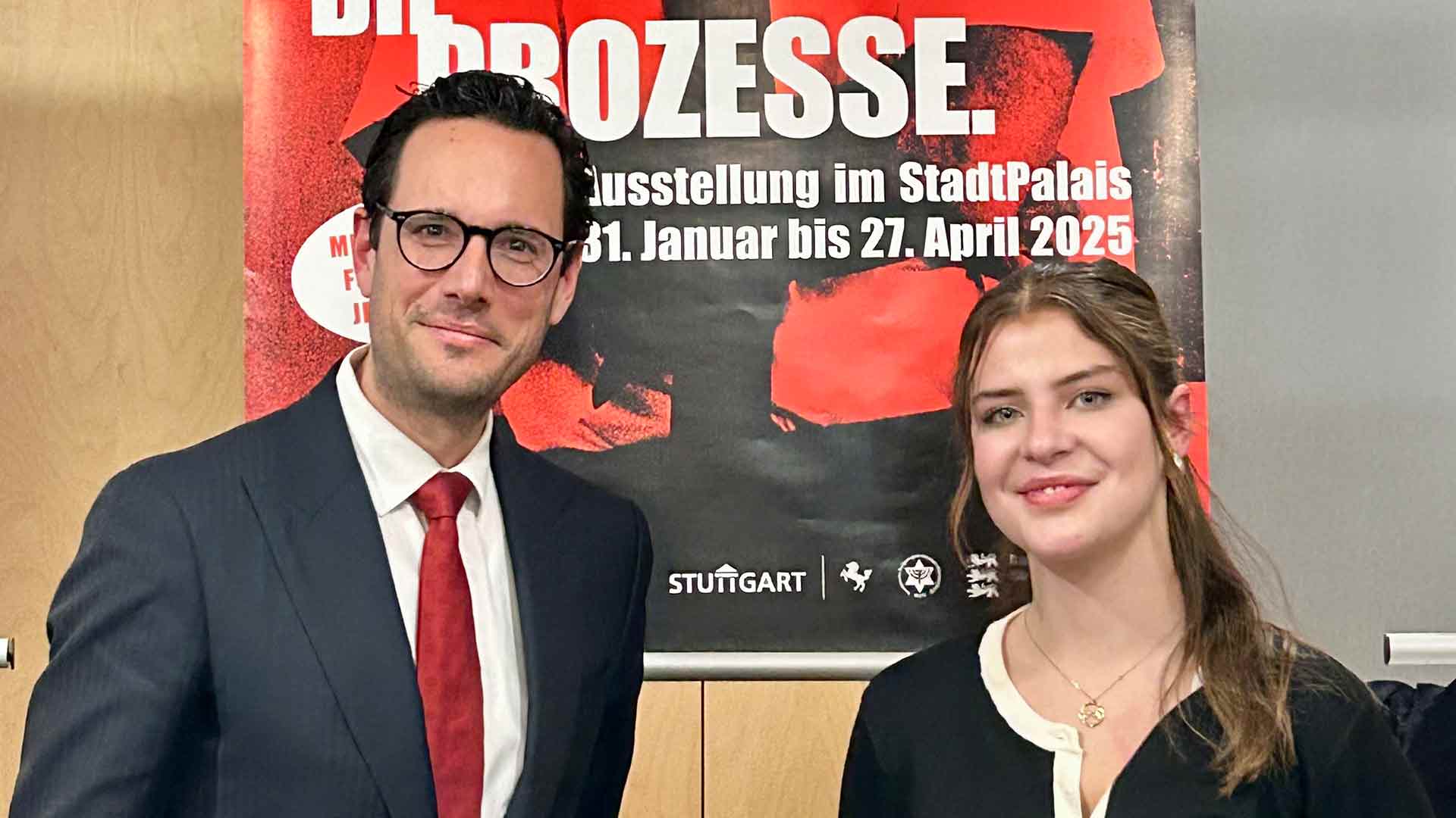 Bei der Veranstaltung wurde das Ebelu durch unsere ehemalige Schülerin Eva-Maria Löw (Abitur 2024) vertreten, die sich zusammen mit drei weiteren Schülerinnen ihres Jahrgangs mittels vielfältiger Aktivitäten sehr wirksam für das öffentliche Erinnern an Fritz Bauer in der Stadt Stuttgart einsetzte.