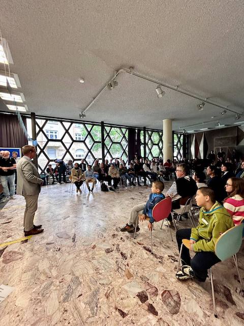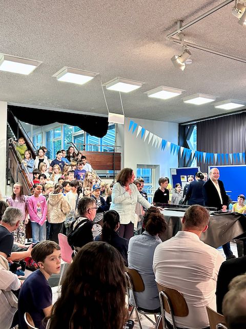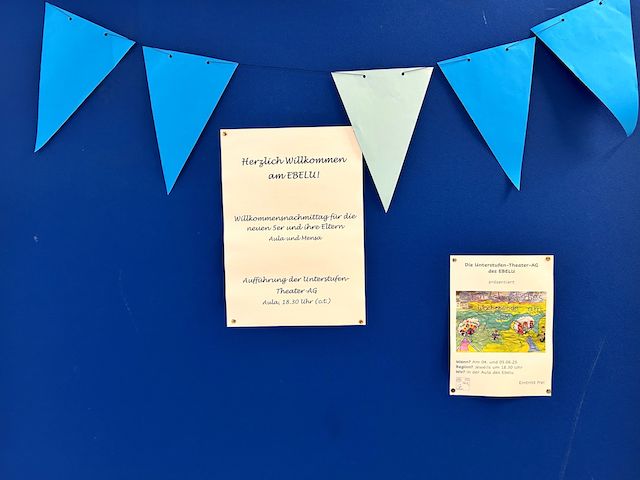 Am vergangenen Mittwoch haben uns die Viertklässler besucht, die sich am Ebelu angemeldet haben. Nach einer persönlichen Begrüßung im Eingangsbereich wurden sie recht bald von Herrn Zecher aufgerufen und versammelten sich, bestimmt ein wenig aufgeregt, um ihre jeweiligen Klassenlehrkräfte Herrn Kronenberg, Frau Beckel und Frau Moormann. Diese nahmen sie mit in ihre Klassenzimmer, wo sie die anderen Kinder aus der Klasse kennenlernen konnten. Dann ging es schon weiter zu Frau Amann und Herrn Siegel, die mit ihnen zwei Lieder einübten, weil die Musik genauso wie die alten Sprachen einfach zum Ebelu dazu gehört. Währendessen wartete auf die Eltern und Geschwisterkinder ein hübsches Kuchenbüffet, welches die Eltern der aktuellen 5. Klassen vorbereitet hatten. Am Schluss hatte man beim gemeinsamen Singen den Eindruck, es gehören alle schon ein bisschen zur Schulgemeinschaft!
