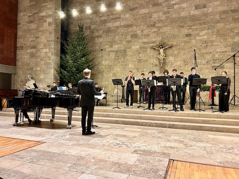 Zugegeben... die 21 Uhr-Vorgabe konnte nicht ganz eingehalten werden. Und dennoch präsentierten unsere Schüler unter der Leitung ihrer Musiklehrer Andrea Amann, Sandra Niehaves, Simon Amend, Matthias Nassauer und Dirk Siegel ein kurzweiliges und vielfältiges Konzert, das die Zuhörerschaft gelungen auf Weihnachten einstimmte. Von den jüngsten Mitgliedern der Schulgemeinschaft bis zum Oberstufenchor, dem Orchester und der Jazzband erlebte man leidenschaftliches Musizieren und verließ am Ende die Pauluskirche ein bisschen glücklicher als man sie betreten hatte.
