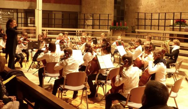 Im Nachwuchsorchester kommen Instrumentalisten der Klassen 5-7 zusammen, um im gemeinsamen Musizieren Freude zu erleben und das Orchesterspiel zu erlernen. Sehr gute Spieler dürfen die Positionen von Stimmführern einnehmen oder als Solisten mit dem Orchester auftreten und erlernen, Stimmproben zu leiten. Schüler, die technisch auf ihrem Instrument noch nicht so weit sind, bekommen für sie zugeschnittene vereinfachte Stimmen. Ziel ist es, die jungen Musiker*innen an die Orchesterliteratur heranzuführen und sie für diese wunderbare Form des Zusammenspiels zu sensibilisieren.