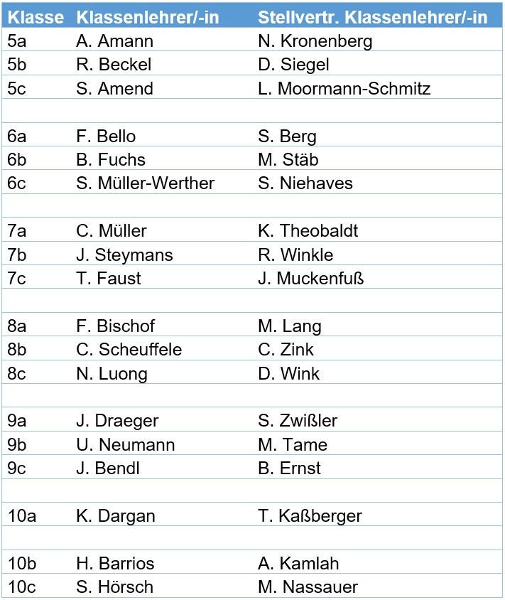 Die offizielle Sprechstundenliste benötigen wir nicht mehr, da Eltern und Lehrer nun bequem über die Schul-Mail-Adressen der Lehrer Kontakt aufnehmen und einen individuellen Termin vereinbaren können.