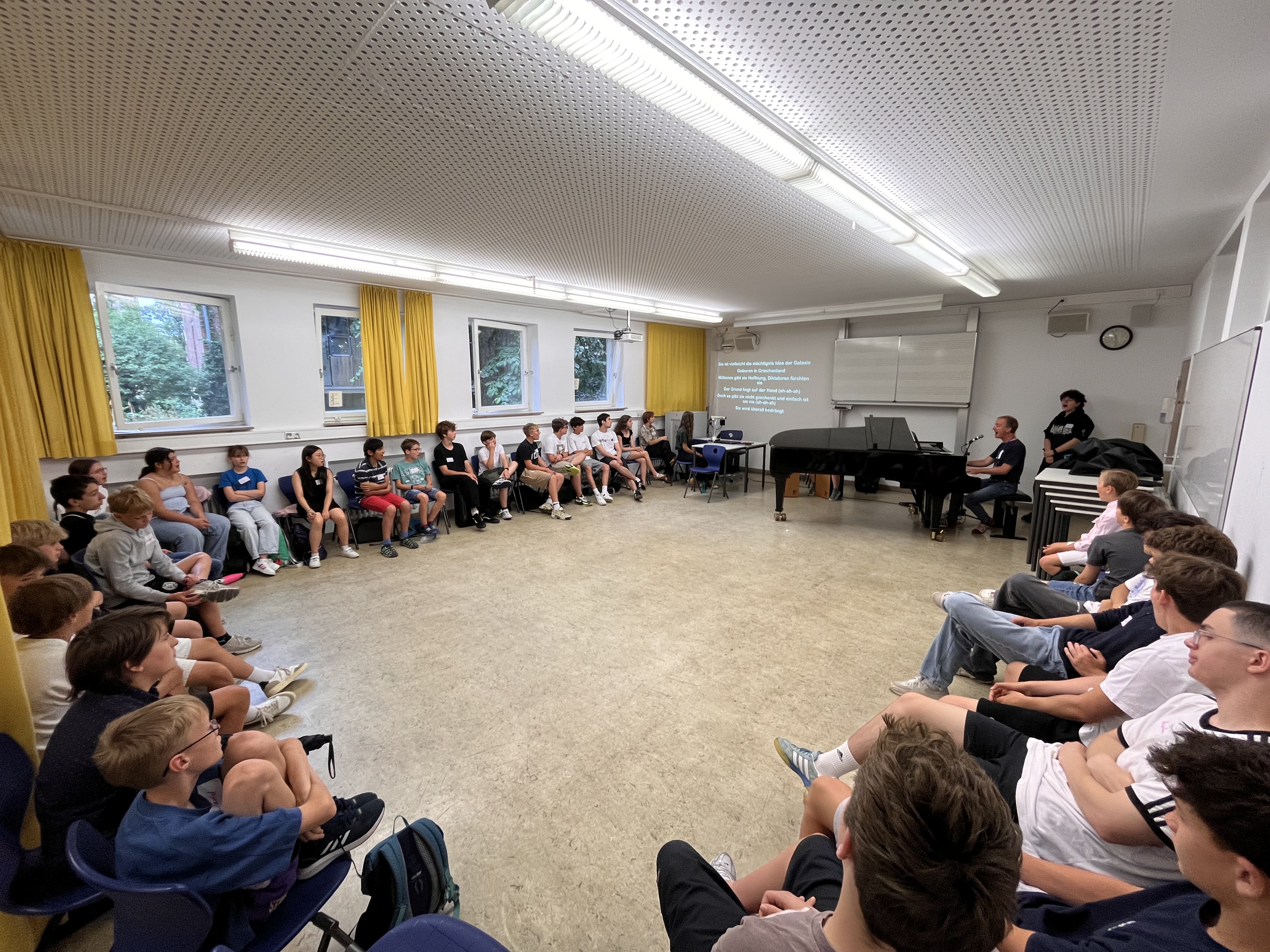 Der Aktionstag "Schule ohne Rassismus - Schule mit Courage" am 14. Juli hat gezeigt, dass sich die lange, akribische Planung und die großen Anstrengungen des Teams um Lena Conrad gelohnt haben: Es wurde gebastelt, gesungen, gespielt, gesprochen und getanzt, im Mittelpunkt die Themen Vielfalt und Toleranz. Schirmherrin Muhterem Aras eröffnete den Tag mit einem Impulsvortrag, dem die Arbeit in den vielfältigen Workshops folgte. Dabei wurde das Courage-Team bestehend aus Schülern und Lehrern auch von externen Experten unterstützt: Nahost-Experte Jörg Armbruster war ebenso dabei wie unser ehemaliger Kollege und Pfarrer Eberhard Schwarz und Sänder und Motivationstalent Patrick Bopp, um nur einige zu nennen. Der Tag endete mit einer Präsentation der erarbeiteten Beiträge.