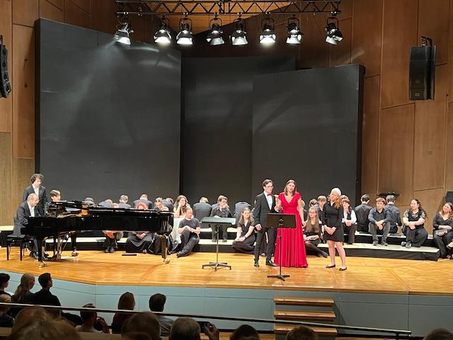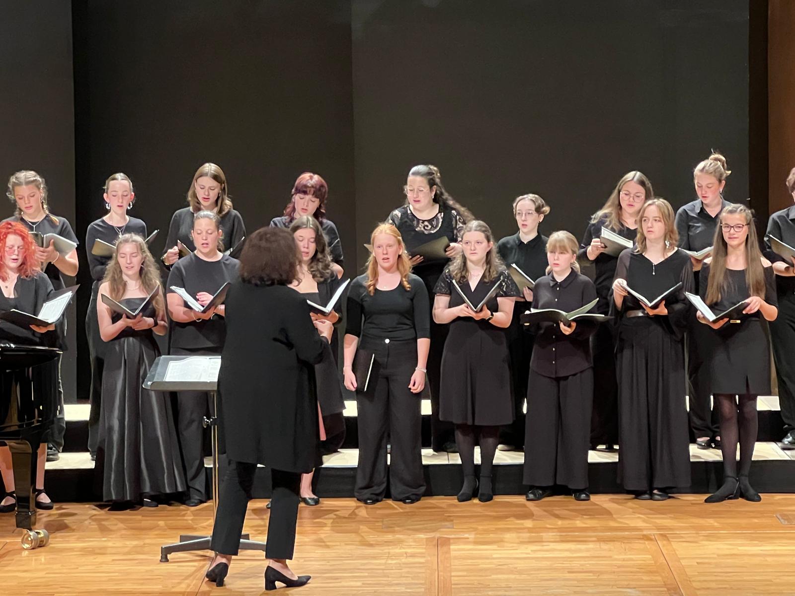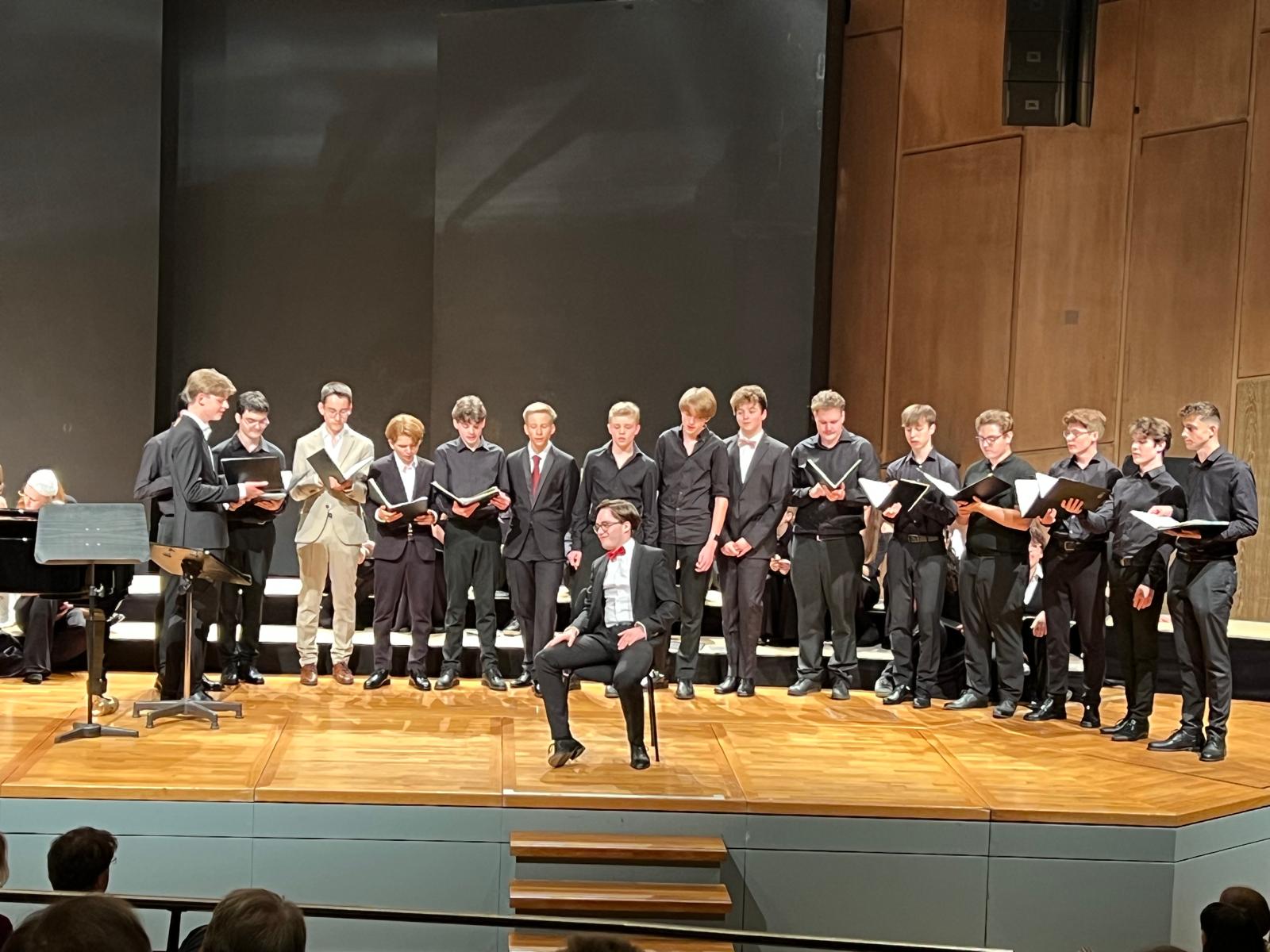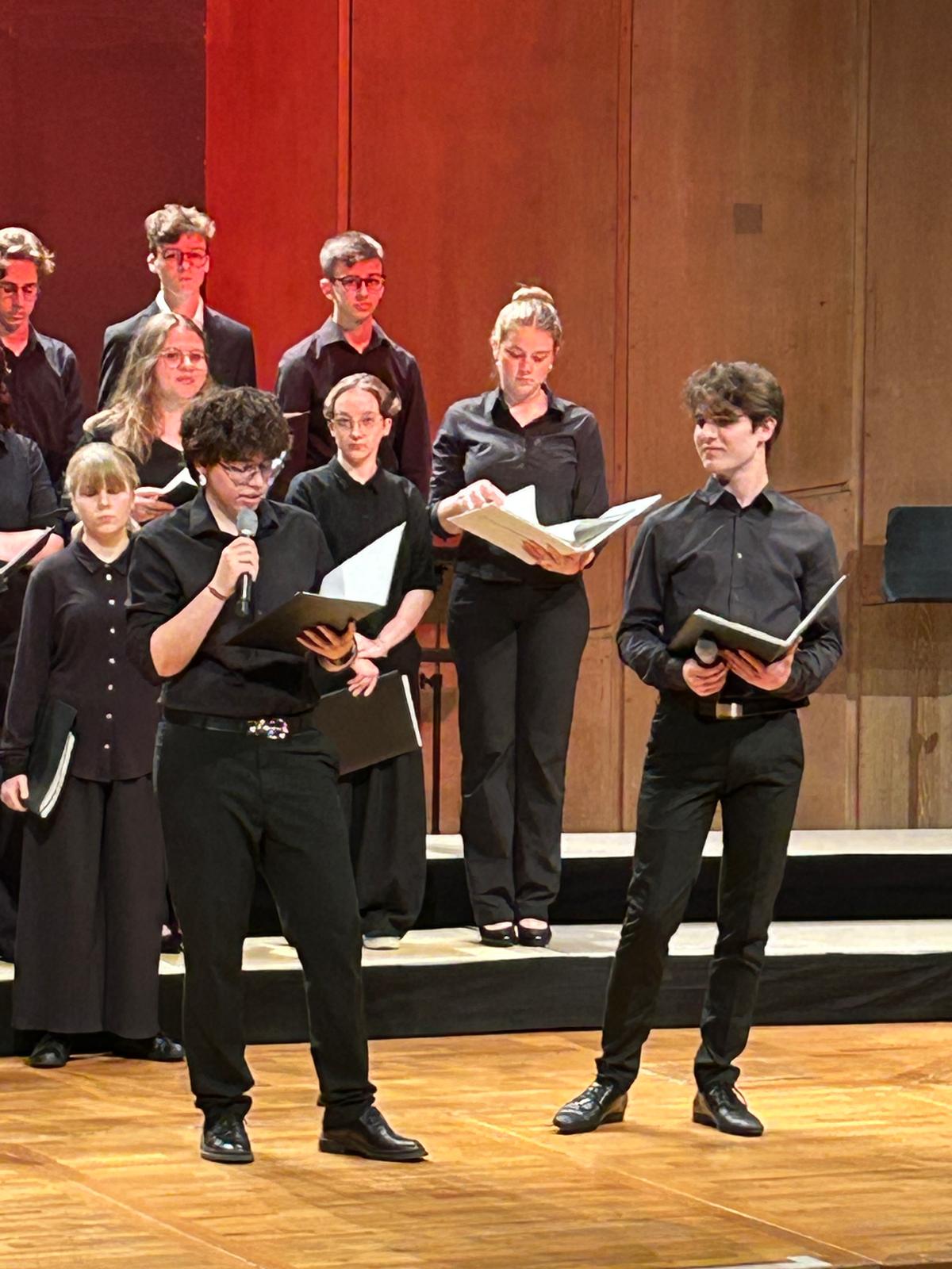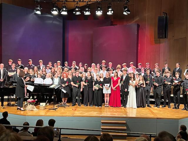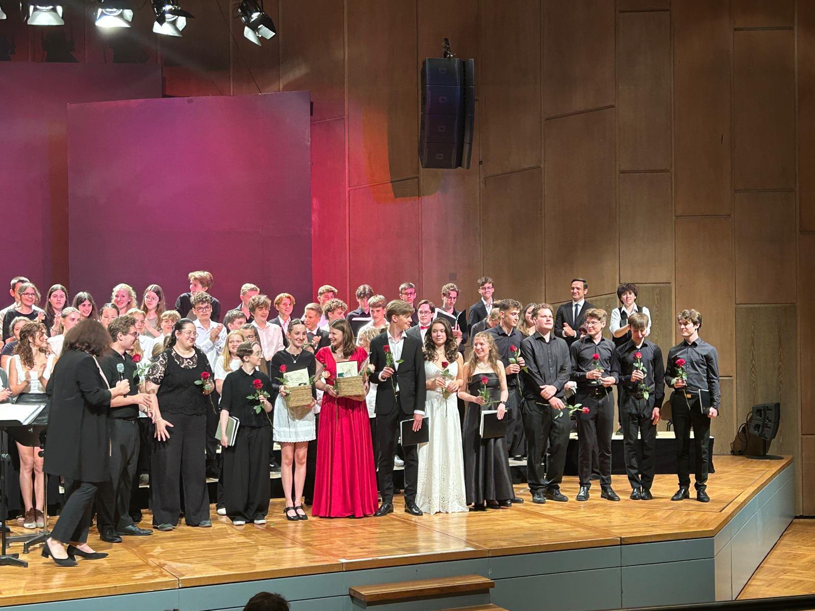 Unter dem Motto "Erst ein Kuss, dann ein Du - Verkehrte Welt in Schauerballade und Operette" standen am Donnerstag, den 24.7. Solisten, Vokalensembles und Chöre sämtlicher Jahrgangsstufen auf der Bühne des Mozartsaals in der Liederhalle. Nach Probenphasen in der Schule und einer Intensivphase in Ochsenhausen präsentierten die Schüler ihr Repertoire in einem dreistündigen Konzert, das für unsere KS2-Chorschüler nun auch das Ende ihrer Schulzeit am Ebelu markiert.
