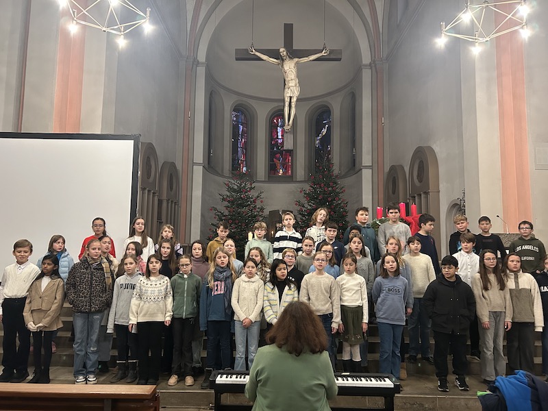 Für einen gelungenen Jahresabschluss und eine festliche Einstimmung auf Weihnachten sorgten am heutigen Freitag, den 19.12. die Fachschaft Religion und die Blechbläser unter der Leitung von Herrn Nassauer.