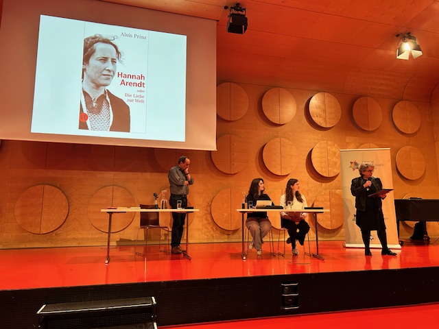 Am Mittwoch, 05.11.2025, stellte der Autor Alois Prinz im Hospitalhof im Rahmen der jüdischen Kulturwochen seine Biographie über Hannah Arendt (1906-1975), eine der bedeutendsten Intellektuellen des 20. Jahrhunderts, vor. Hannah Arendt nahm für die New York Times als Berichterstatterin am Prozess über Adolf Eichmann in Jerusalem teil, zu dessen Ergreifung unser ehemaliger Schüler Fritz Bauer den entscheidenden Hinweis gegeben hatte.