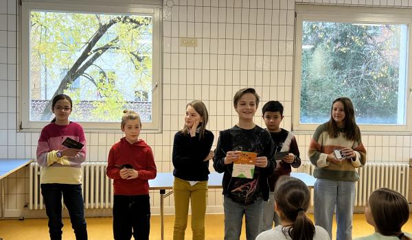 Freitagmorgen, 22.11., Vorlesewettbewerb am Ebelu: Alle 5. und 6. Klässler versammeln sich in der Mensa, um gebannt den Lesebeiträgen der sechs Finalisten aus den Klasse 6a, 6b und 6c zu lauschen. Sarah Kabisch, Lio Mahle, Emilie-Sophie Eger, Ferdinand Schmid, Fritz Deißler und Benjamin Schaff wurden zuvor von ihren Klassenkameraden zu den besten Lesern der Klasse gekürt und haben diese würdig vertreten. Die Bücher, aus denen sie vorlasen, reichten von historischem Jugendbuch bis zum Kinderbuchklassiker. Letztlich durchgesetzt hat sich Lio Mahle aus der 6a mit seinem Vortrag aus "Eine Woche voller Samstage" von Paul Maar. Herzlichen Glückwunsch!